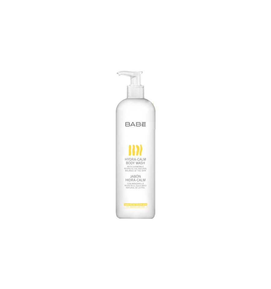 Jabón de baño babé hidra calm muy suave con aspecto perlado indicado para la higiene diaria de la piel sensible y delicada.