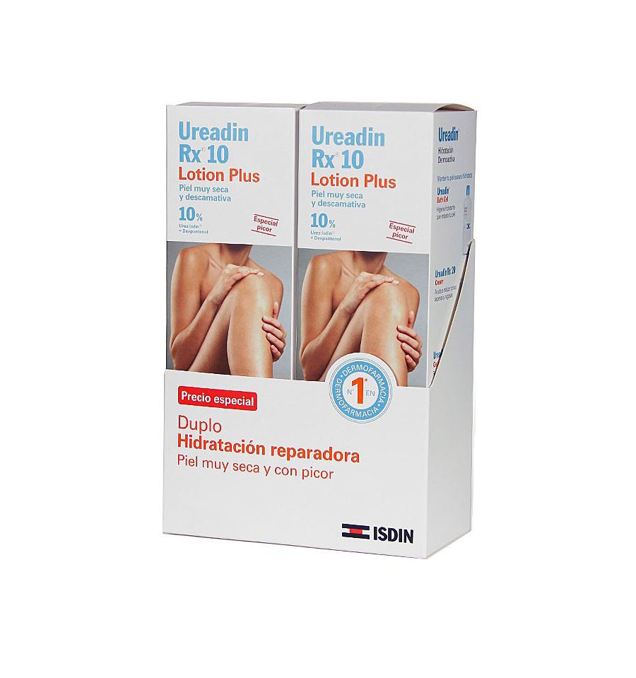 Ureadin Pack Duplo RX 10 Lotion Plus 400 ml. Loción indicada para la hidratación intensiva de las pieles muy secas y descamativas. Con textura ligera, no grasa y de rápida absorción. Testada dermatológicamente.